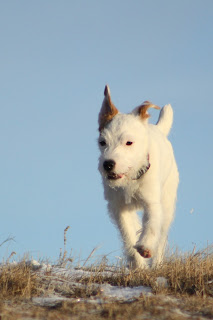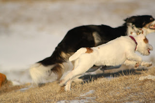Most of her life is spent just runnning wild like some sort of prairie creature. She loves to run, and hates to lose. I think she will be a really fun agility dog one day!